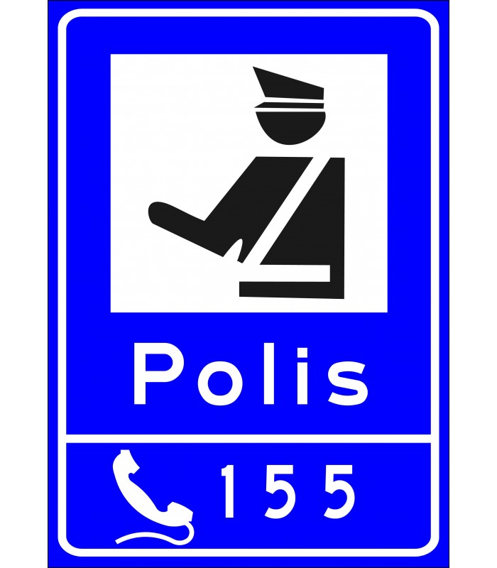 Alo 155 Polis İhbar Hattı Trafik Levhası – Acil Güvenlik İşareti