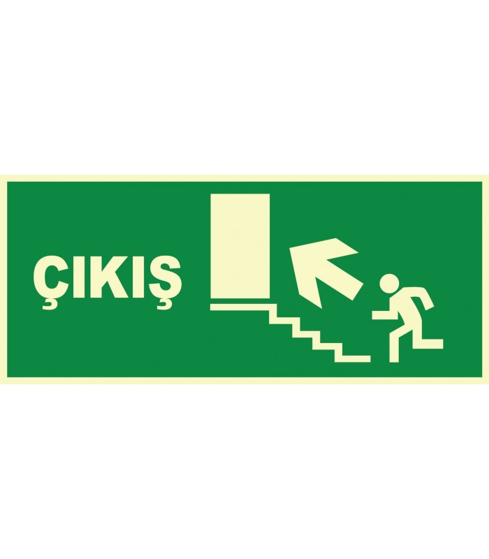 Fosforlu Acil Çıkış Levhası: Merdivenden Yukarı Sola Yönlendirme