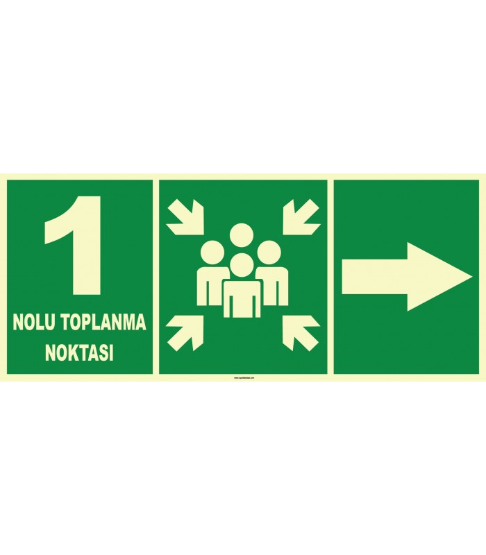 Fosforlu 1 Nolu Acil Toplanma Noktası Sağ Yön İşareti (3mm Dekota PVC): Karanlıkta parlar, yüksek kalite ve profesyonel baskı ile güvenliği sağlayın. Hemen sipariş verin!