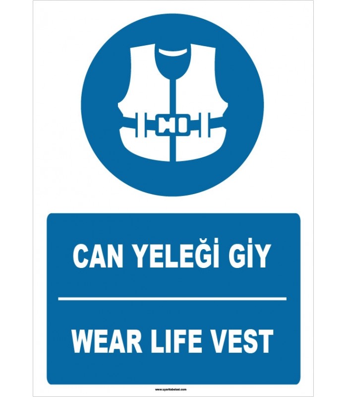 Türkçe İngilizce Can Yeleği Giy / Wear Life Vest Levhası