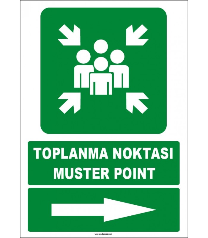 Türkçe İngilizce Toplanma Noktası / Muster Point Levhası, Sağ Yön