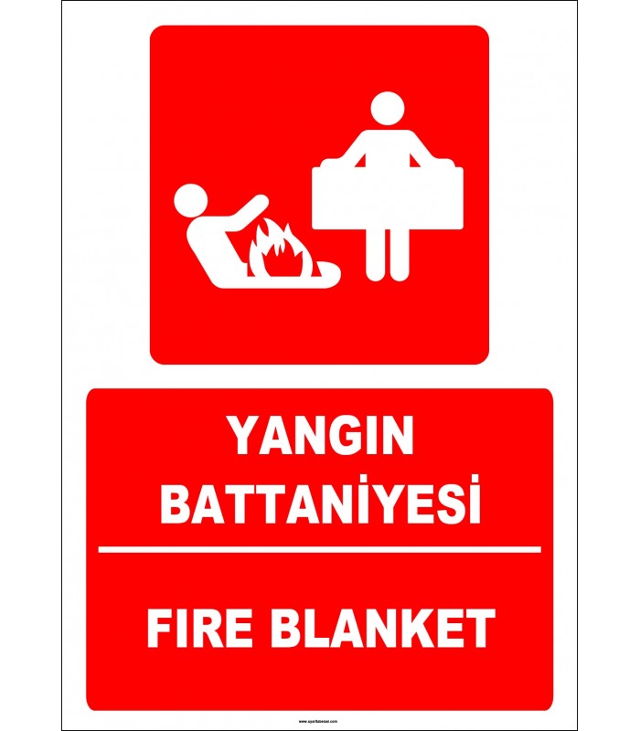 Türkçe İngilizce Yangın Battaniyesi | Acil Durum Fire Blanket Levhası