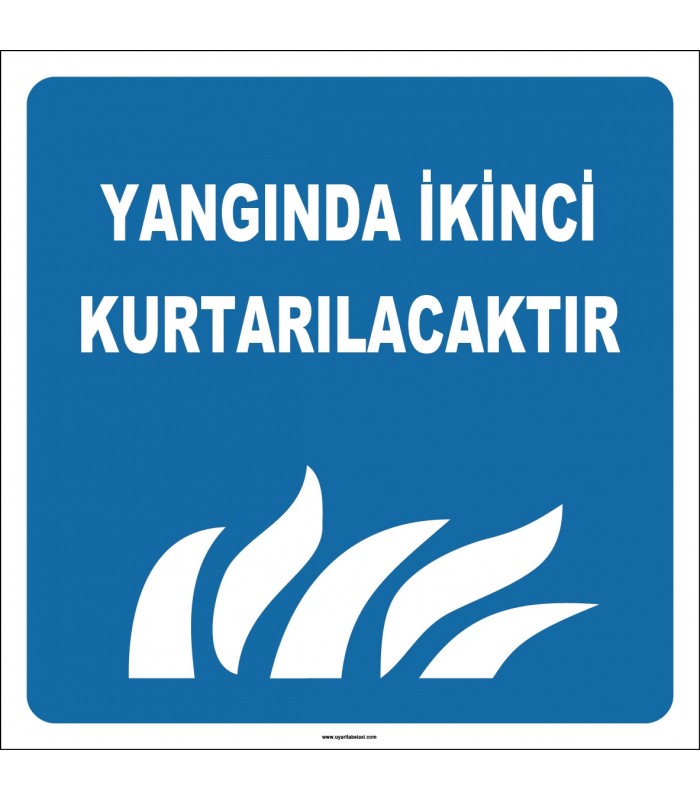 Yangında İkinci Kurtarılacaktır levhası ile can güvenliğini artırın. Yüksek kaliteli 3mm Dekota PVC malzeme, profesyonel baskı ve hızlı teslimat farkıyla şimdi sipariş verin!